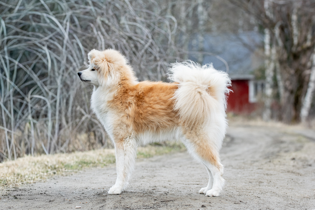 Minun oli tarkoitus käyttää Komon isää Musaa Shuralle, mutta katsoin paremmaksi, ettei Suomeen tule samalta ulkomaalaiselta urokselta lyhyellä aikavälillä kahta pentuetta. Haaveilin kuitenkin Musan jälkikasvusta, joten "komopromissina" Jurvaan muutti pentu tästä upeasta yhdistelmästä. Komo jotenkin tiesi, että paikalla on tuleva mamma pentuja katsomassa, sillä kaikista pennuista juuri hän oli minusta kaikista kiinnostunein. Komo on iloinen ja toimelias nuori neiti, jonka turkki ei ainakaan vielä aiheuta päänvaivaa.
